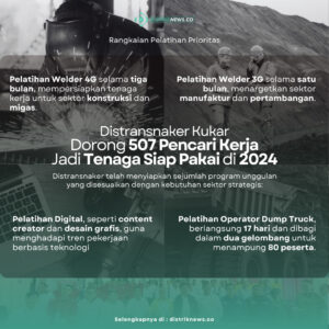 Distriknews.co, Kutai Kartanegara – Dinas Transmigrasi dan Tenaga Kerja (Distransnaker) Kabupaten Kutai Kartanegara (Kukar) terus memprioritaskan pengembangan kompetensi tenaga kerja lokal melalui program pelatihan yang menyasar 507 pencari kerja pada tahun 2024. Inisiatif ini merupakan bagian dari Program Kukar Siap Kerja yang tertuang dalam Rencana Pembangunan Jangka Menengah Daerah (RPJMD) 2021-2026.