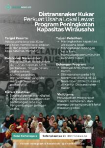 Melalui pelatihan ini, Distransnaker Kukar berharap dapat mencetak lebih banyak wirausahawan lokal yang tidak hanya mampu meningkatkan taraf hidup keluarga mereka, tetapi juga berkontribusi terhadap pertumbuhan ekonomi Kukar.