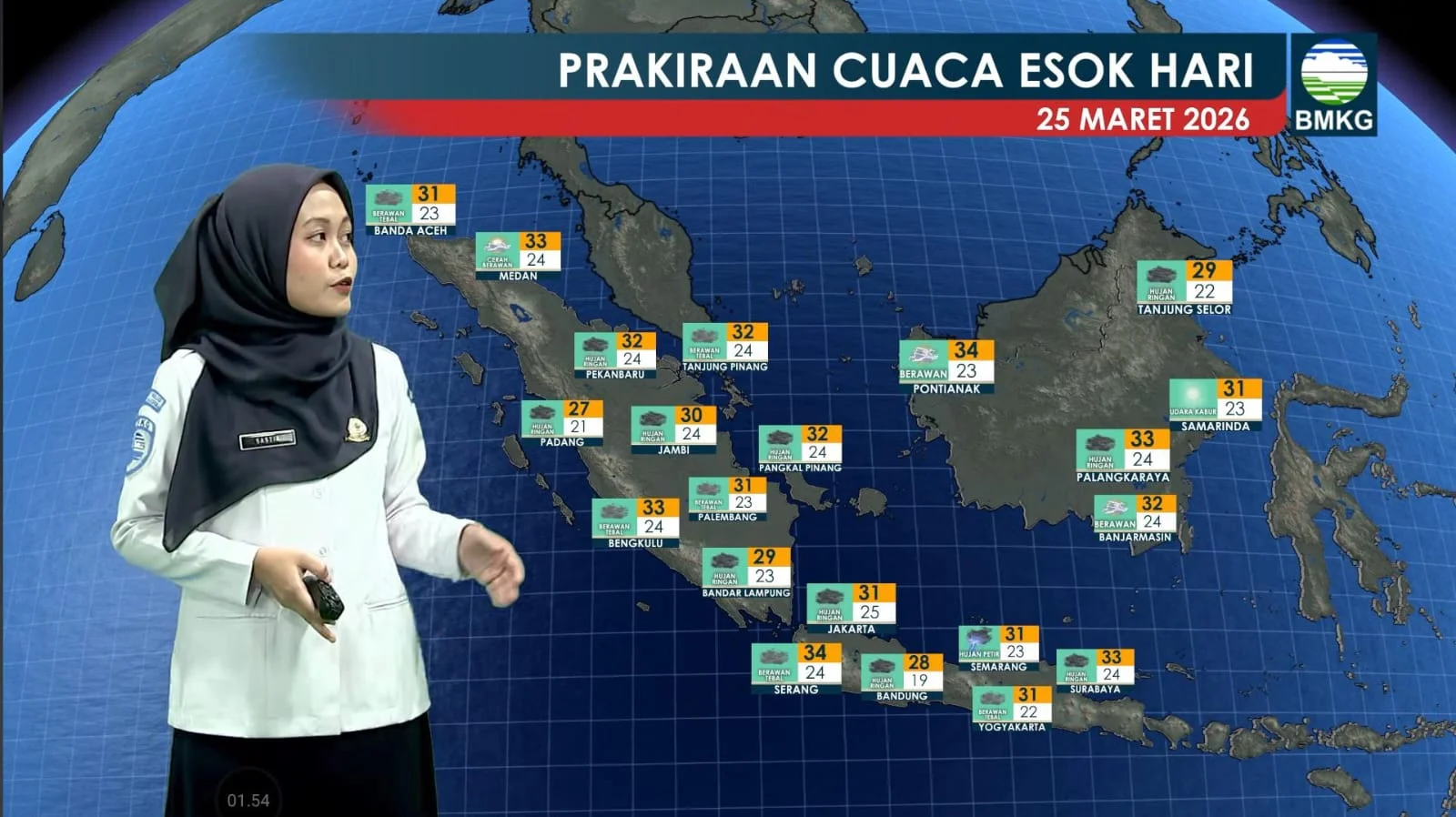 Prakirawan BMKG, Sastia, menyampaikan bahwa kondisi atmosfer saat ini dipengaruhi oleh dinamika cuaca skala regional, termasuk keberadaan eks Siklon Tropis Narel yang terpantau di Samudera Hindia barat laut Australia bagian utara.