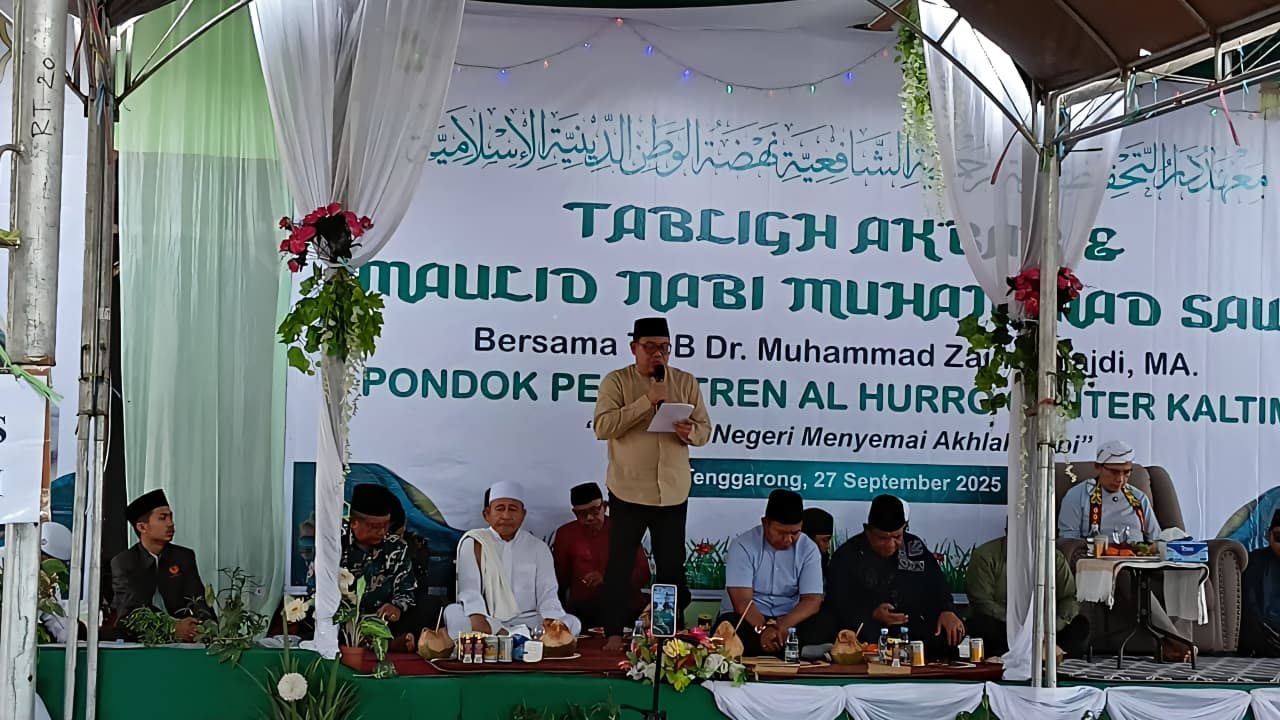 Distriknews.co, Kutai Kartanegara – Peringatan Maulid Nabi Muhammad SAW 1447 Hijriah berlangsung khidmat di Halaman Pondok Pesantren Tahfidzul Qur’an Al Huro Center, Kelurahan Mangkurawang, Kecamatan Tenggarong, Sabtu (27/9/2025). Acara tabligh akbar ini dihadiri ratusan santri, tokoh agama, tokoh masyarakat, serta unsur Forum Koordinasi Pimpinan Kecamatan Tenggarong.