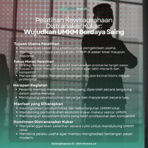 Pelatihan yang diadakan pada Rabu (20/11/2024) ini mengundang narasumber berpengalaman untuk membahas berbagai aspek kewirausahaan, mulai dari strategi pemasaran hingga inovasi produk. Romansyah, analis bahan penempatan tenaga kerja, menegaskan pentingnya pelatihan ini untuk menciptakan UMKM yang tangguh dan inovatif.