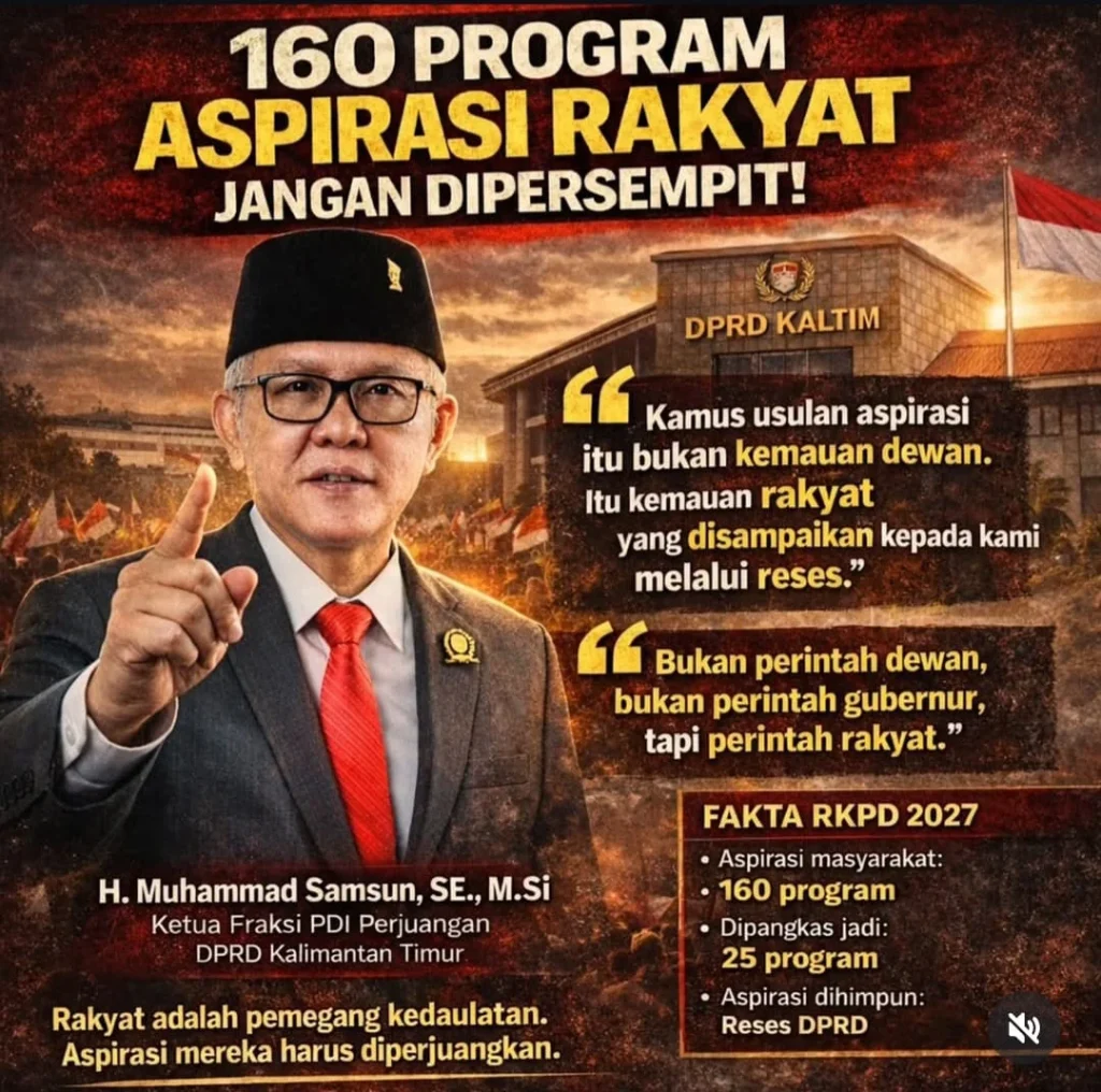 Distriknews.co Kutai Kartanegara – Ketua Fraksi PDI Perjuangan DPRD Kalimantan Timur, Muhammad Samsun, menyoroti adanya pemangkasan jumlah program aspirasi masyarakat dalam proses penyusunan Rencana Kerja